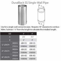 DuraVent DuraBlack 8 Inch Diameter Single Wall Stainless Steel 48 Inch Pipe Length – 8DBK-48SS