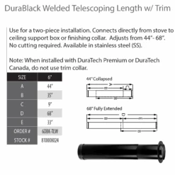 DuraVent DuraBlack 6 Inch Diameter Black 22 Gauge Telescoping Length 44 Inch -48 Inch – 6DBK-TLW