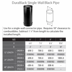 DuraVent DuraBlack 6 Inch Diameter Single Wall Stainless Steel 12 Inch Pipe Length – 6DBK-12SS