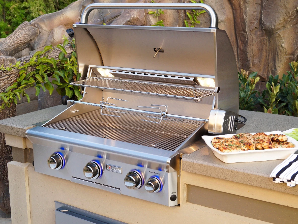 Elevate your outdoor cooking experience with American Outdoor Grills. Our grills are constructed from high-quality commercial-grade stainless steel, boasting a sleek and stylish appearance that complements any outdoor kitchen. Featuring stainless steel rod cooking grids and an analog thermometer for precision grilling, our AOG grills offer a large cooking surface to prepare delicious meals. The rounded hood and contoured face with satin finish add elegance to your outdoor space. Enjoy added features such as the recessed backburner, warming rack, spit rod, and motor, allowing you to create any meal outdoors.