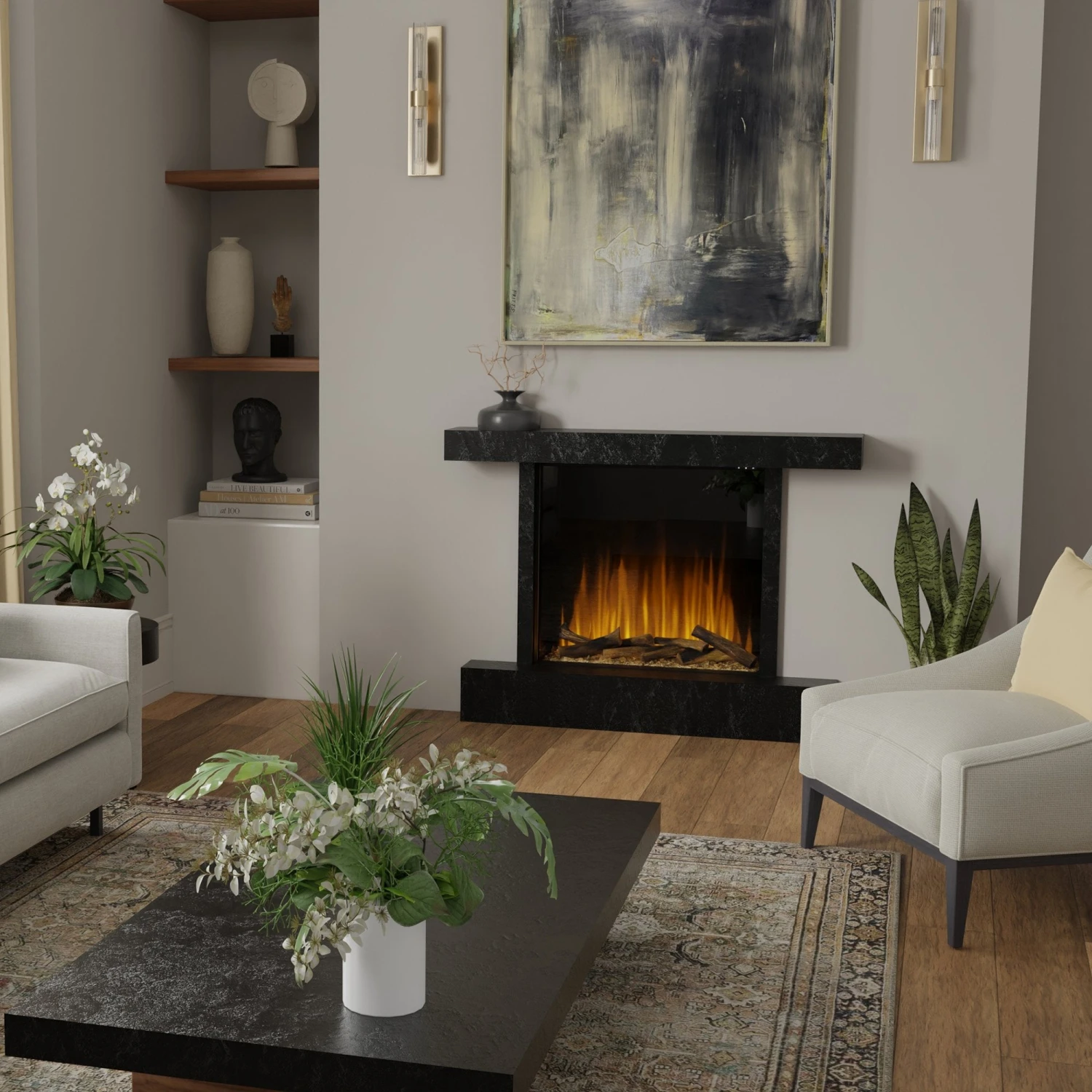 Discover the Ignite Aspire Electric Firebox, revolutionizing traditional fireplaces with Dynamic-Fire Flame Effect and Rhythmic Logs featuring inner glow technology. Experience lifelike logs, pulsating embers, and authentic wood crackles with natural flame colors. The innovative Quick Connect logs offer customizable appearances. Designed in standard gas fireplace sizes, the Ignite Aspire provides an eco-friendly alternative to natural gas units, blending style with sustainability.