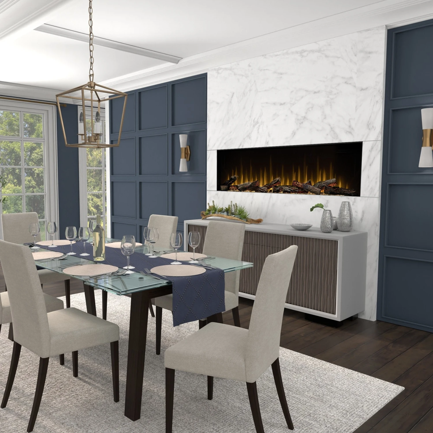 - Enjoy the soothing sound of crackling wood with your fireplace.
