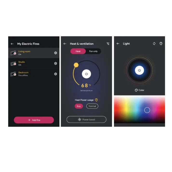 - Ambient Light Sensor – Automatically adjusts firebox light to suit the room day to night