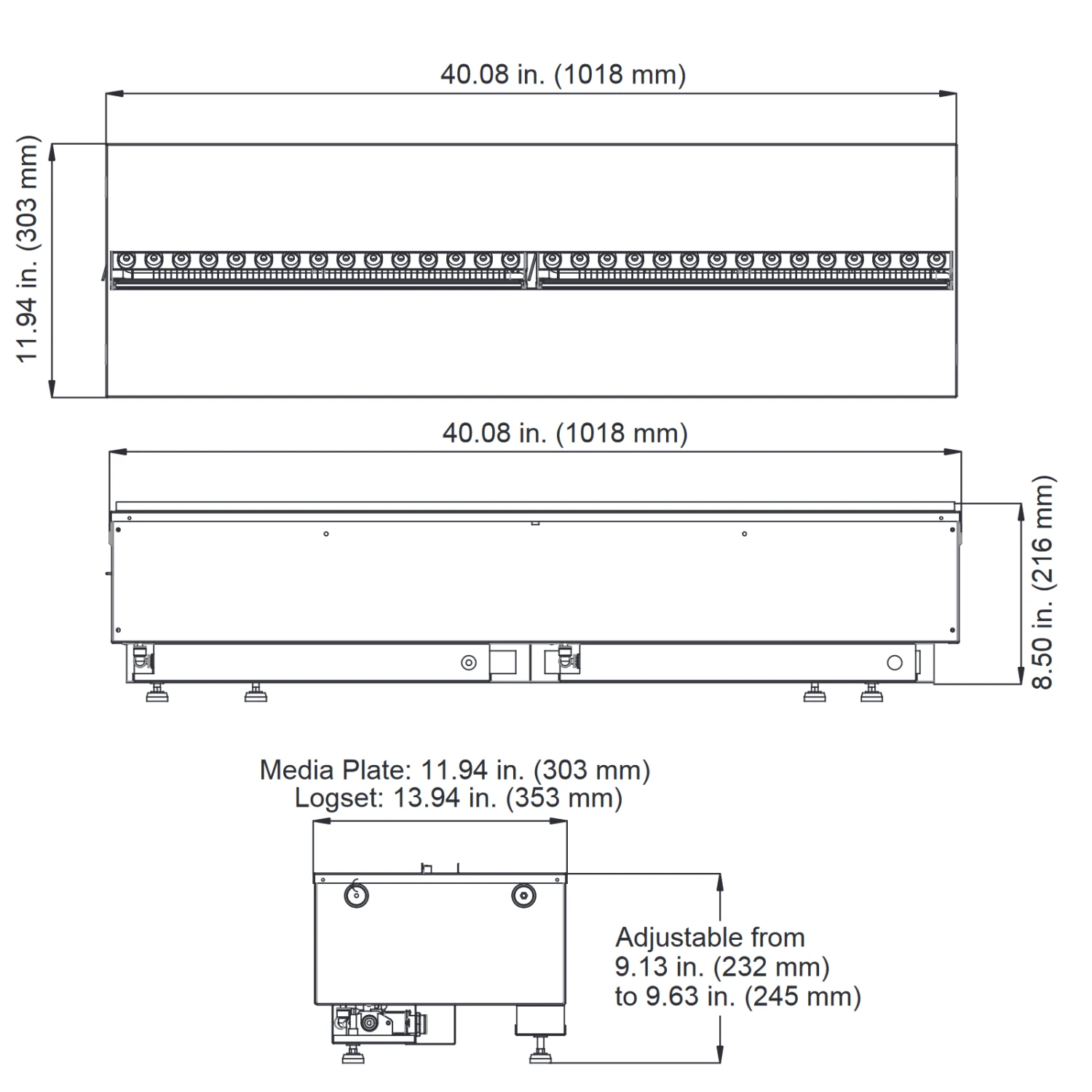 - Media Options – Includes a flat plate that supports custom media (not included). Optional inner glow logs also available.
