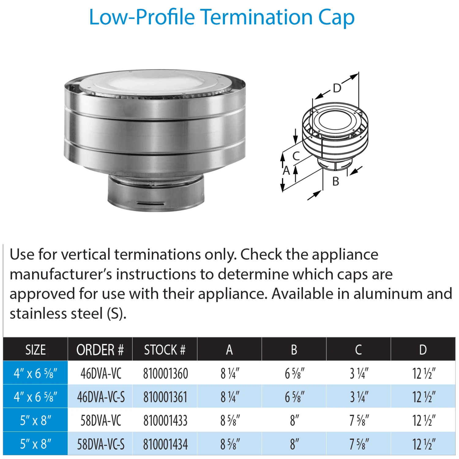 DuraVent DirectVent Pro Low Profile Vertical Termination Cap Stainless Steel Direct Vent Pipe For Gas Fireplaces & Gas Stoves | 58DVA-VC-S |