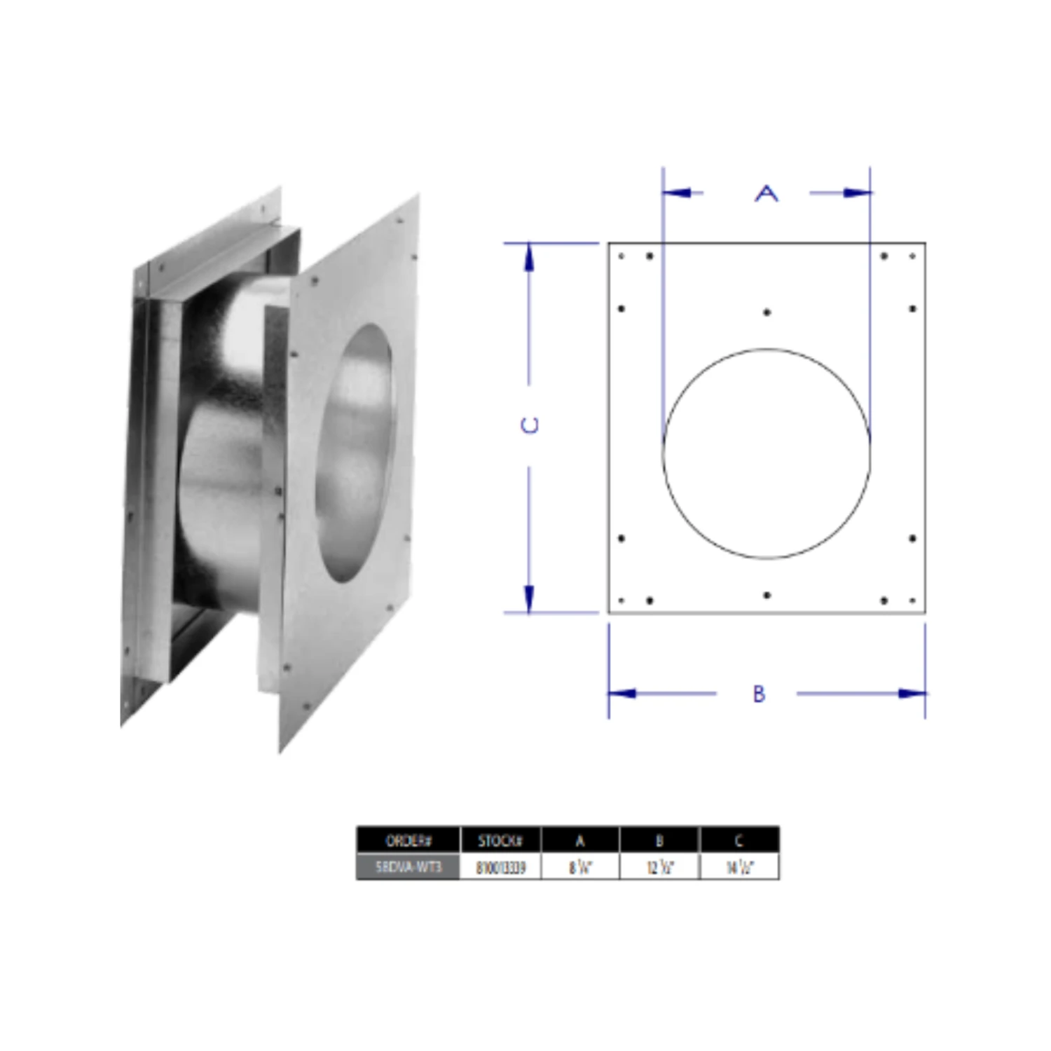 DuraVent DirectVent Pro Wall Thimble Direct Vent Pipe For Gas Fireplaces & Gas Stoves | 58DVA-WT3 |