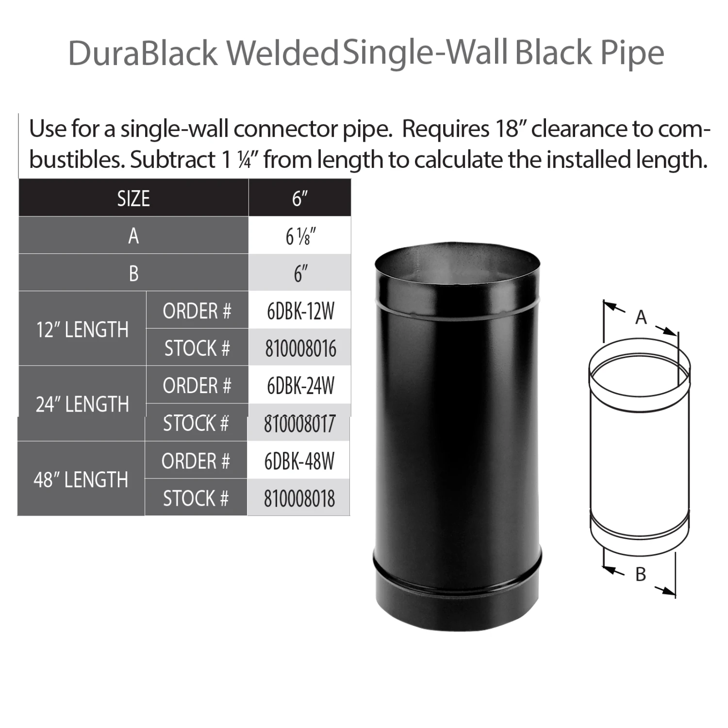 DuraVent DuraBlack 6″ Diameter Black 22 Gauge 48″ Pipe Length | 6DBK-48W |
