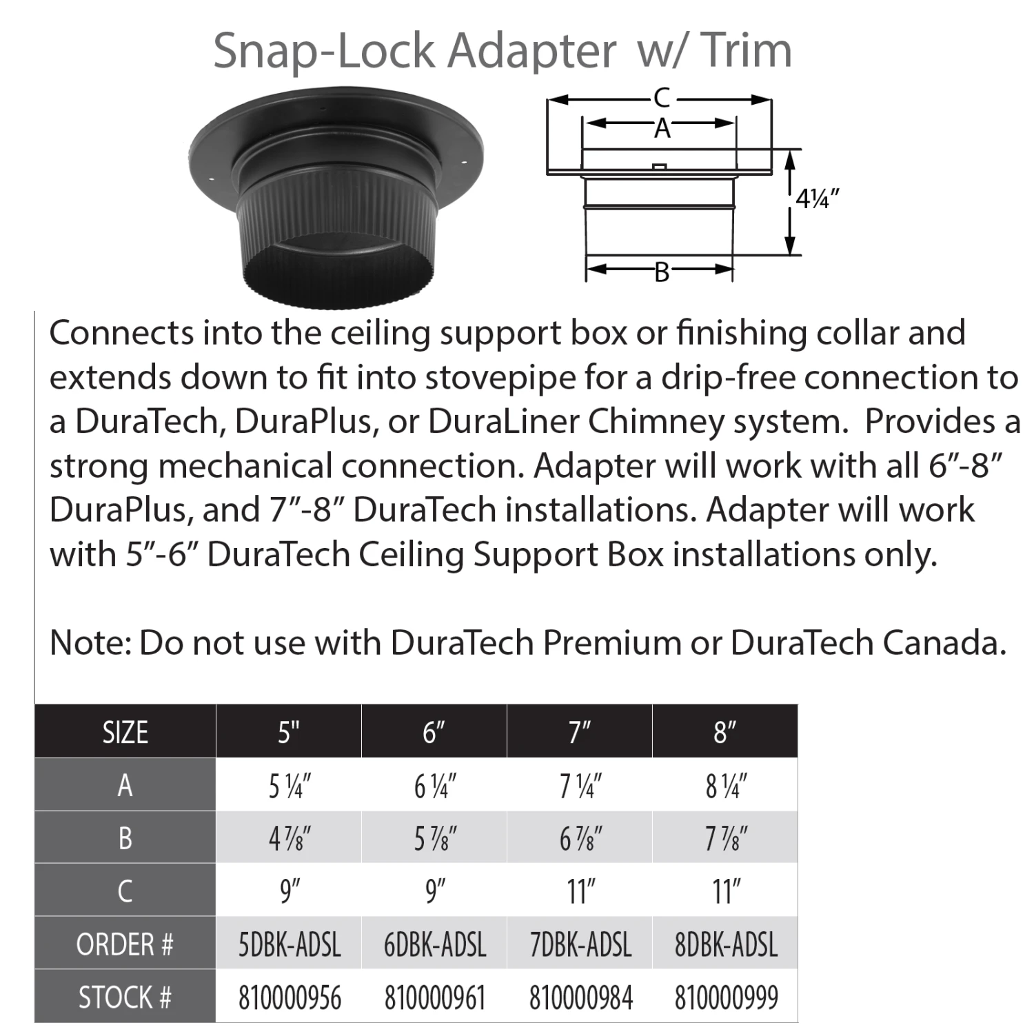 DuraVent DuraBlack 6″ Diameter Black Snap-Lock Adapter w/Trim | 6DBK-ADSL |