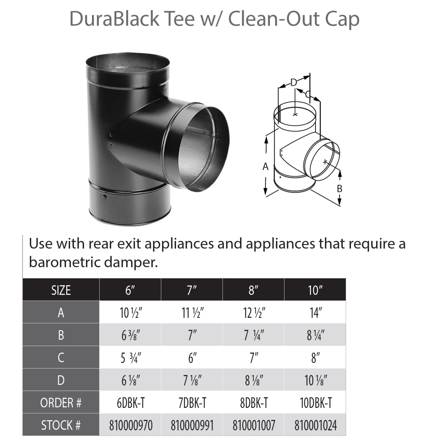 DuraVent DuraBlack 6″ Diameter Black Tee w/Clean-Out Cap | 6DBK-T |