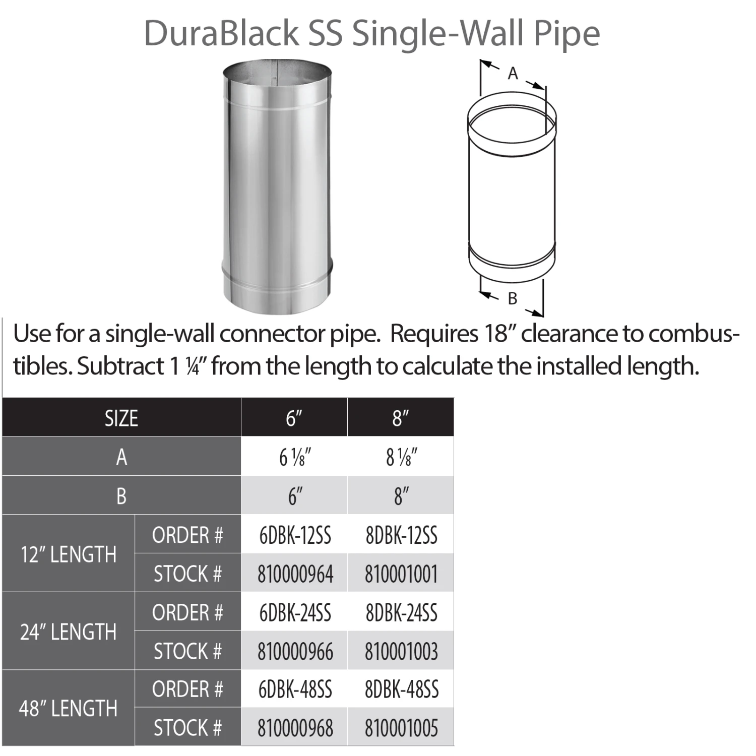 DuraVent DuraBlack 6″ Diameter Single Wall Stainless Steel 48″ Pipe Length | 6DBK-48SS |