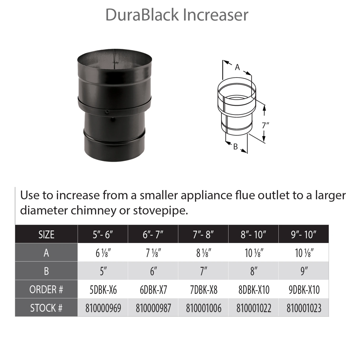 DuraVent DuraBlack 8″ Diameter Black Increaser 7″ – 8″ | 7DBK-X8 |