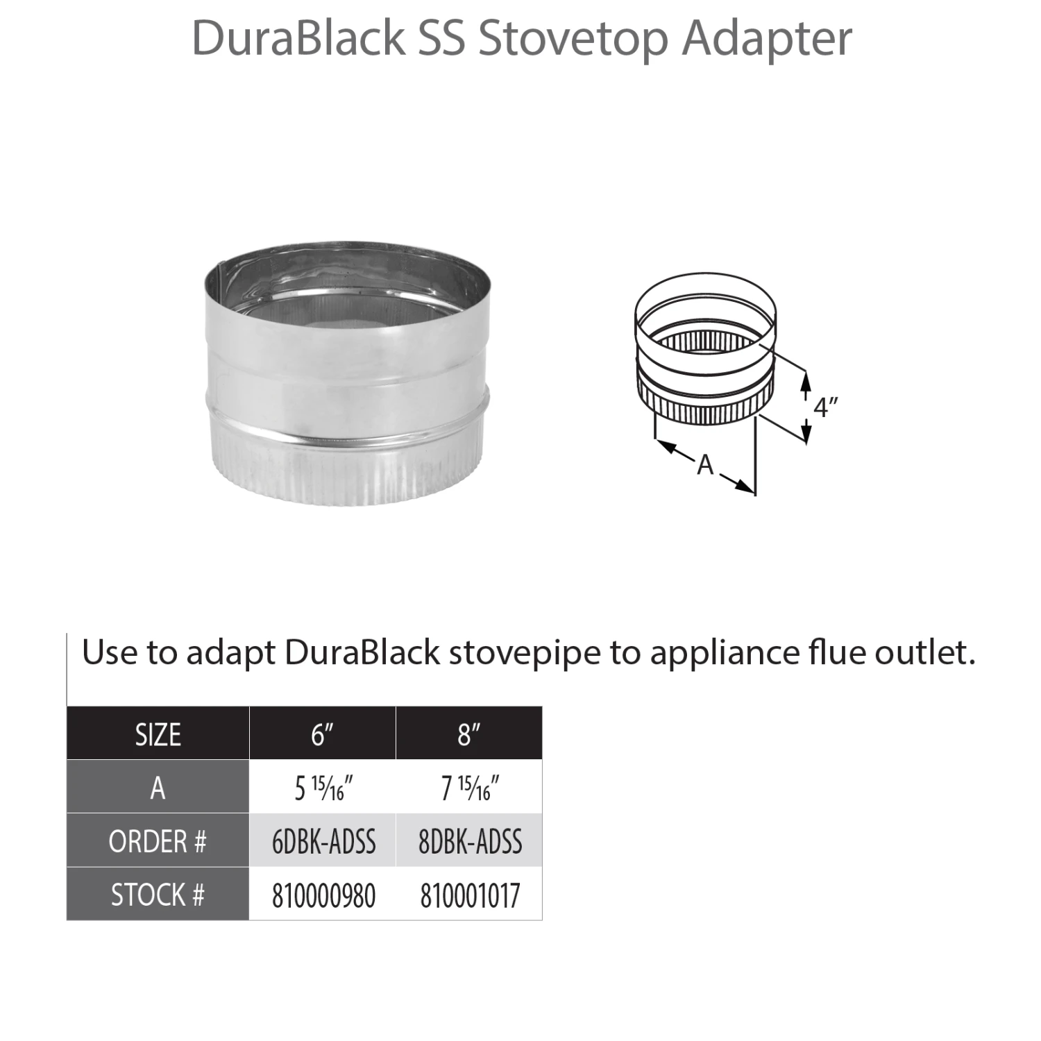 DuraVent DuraBlack 8″ Diameter Stainless Steel Stovetop Adapter | 8DBK-ADSS |