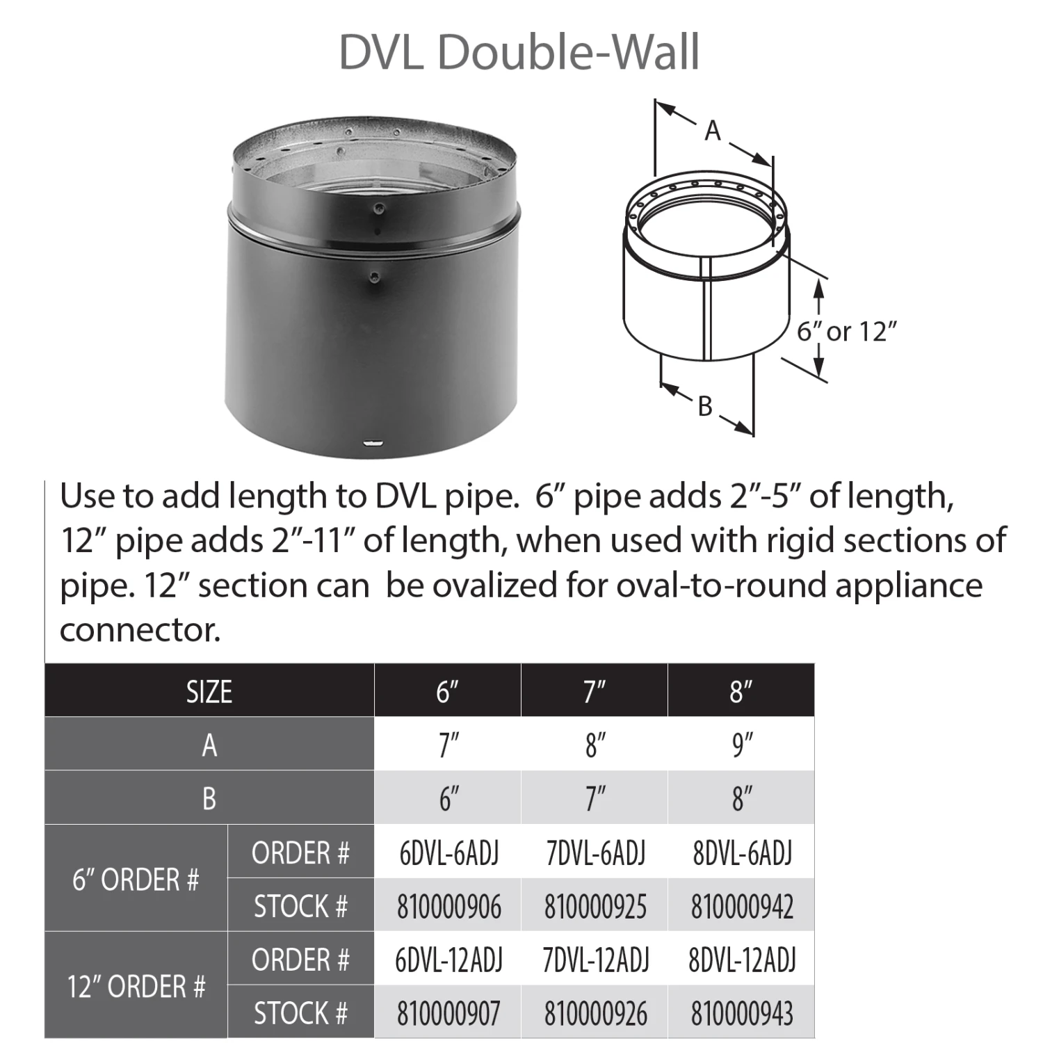 DuraVent DVL 6″ Diameter Double Wall Black 12″ Adjustable Pipe Length | 6DVL-12ADJ |