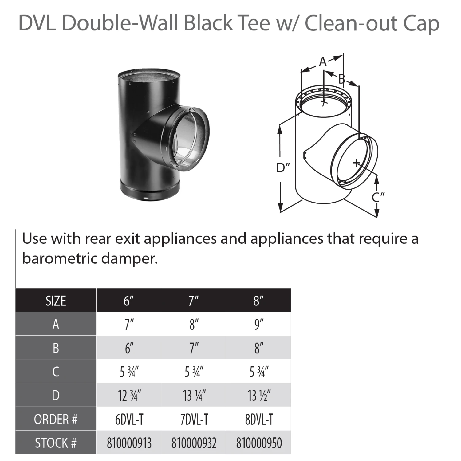 DuraVent DVL 7″ Diameter Double Wall Black Tee w/Clean-Out Cap | 7DVL-T |
