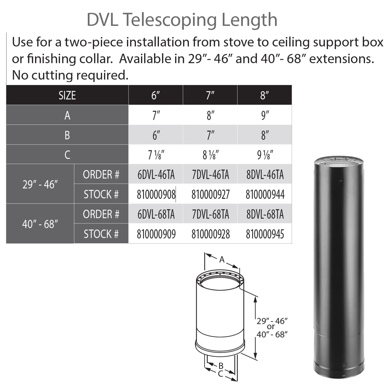 DuraVent DVL 7″ Diameter Telescoping Length 29″ – 46″ | 7DVL-46TA |