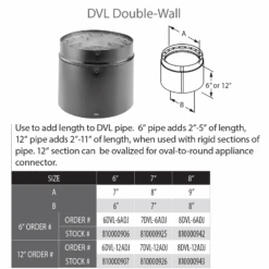 DuraVent DVL 8″ Diameter Double Wall Black 6″ Adjustable Pipe Length | 8DVL-6ADJ |