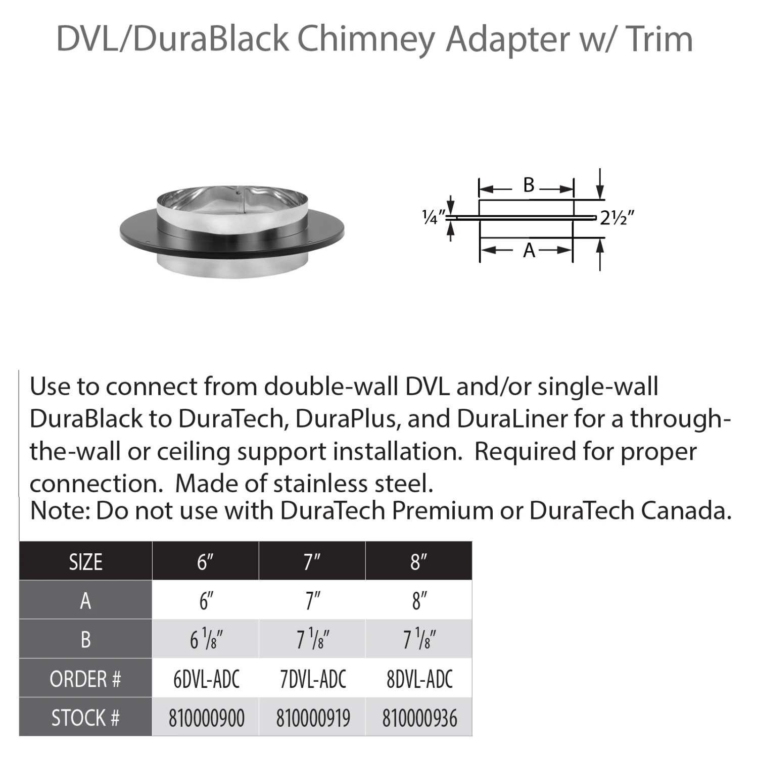 DuraVent DVL/DuraBlack 8″ Diameter Black Chimney Adapter | 8DVL-ADC |