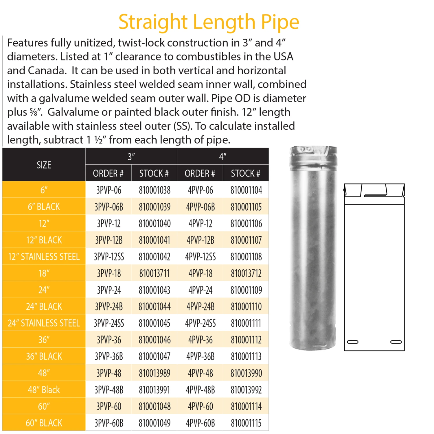 DuraVent Pellet Vent Pro 3″ Diameter 18″ Length Pipe | 3PVP-18 |