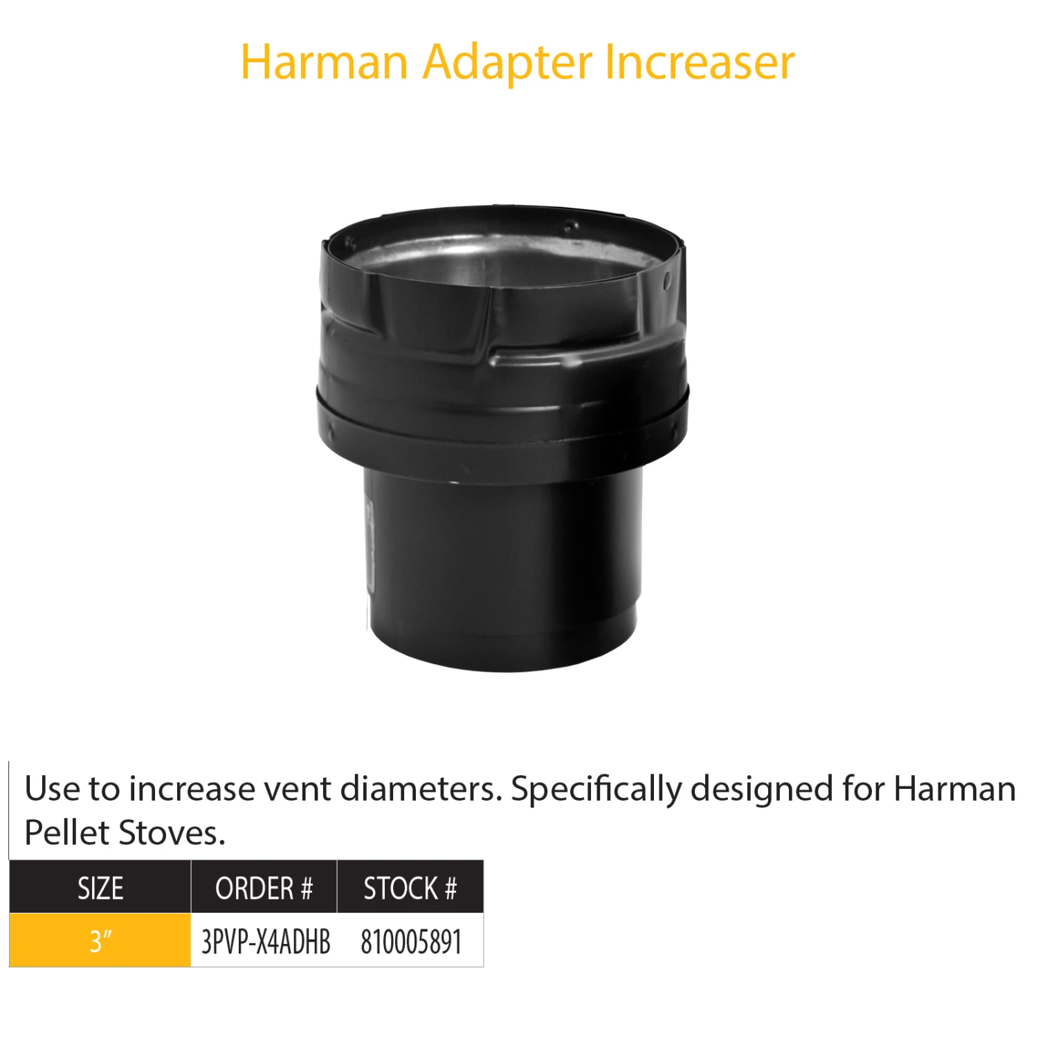 DuraVent Pellet Vent Pro Appliance Adapter/Increaser Harmon 3″ – 4″ (black) | 3PVP-X4ADHB |