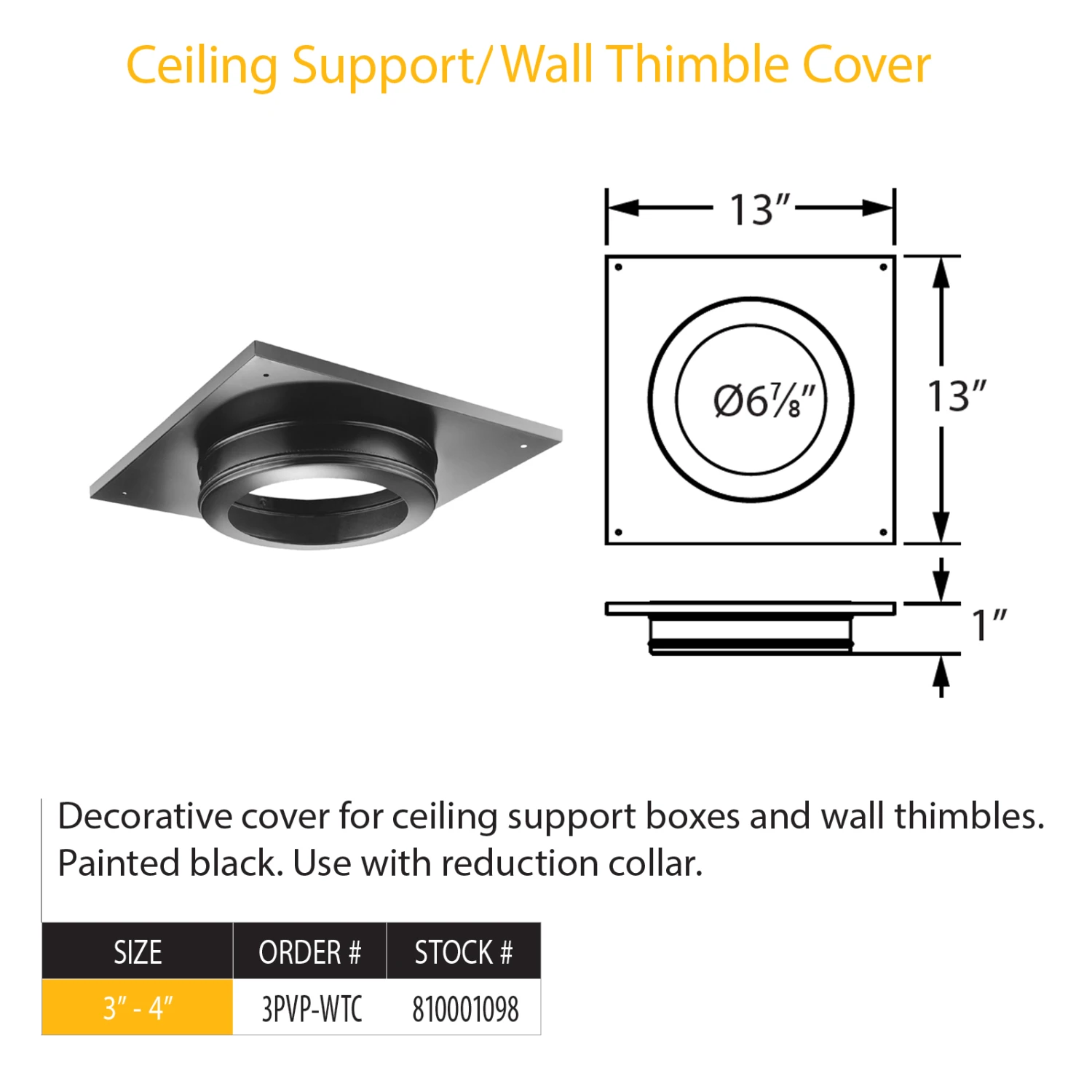DuraVent Pellet Vent Pro Ceiling Support/Wall Thimble Cover | 3PVP-WTC |