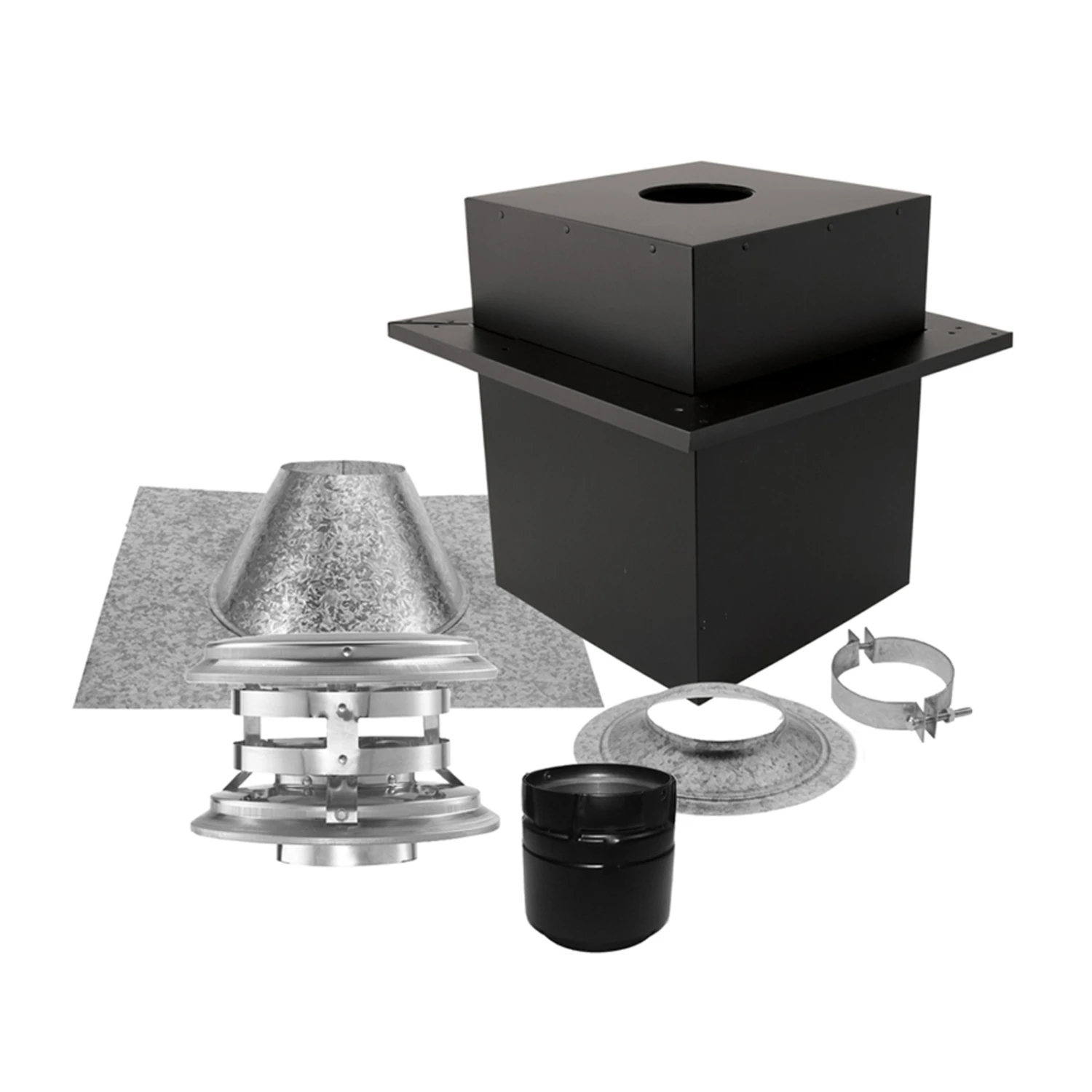 Includes: Vertical Cap, Storm Collar, Cathedral Ceiling Support Box, Adjustable Flashing, Appliance Adapter [black]