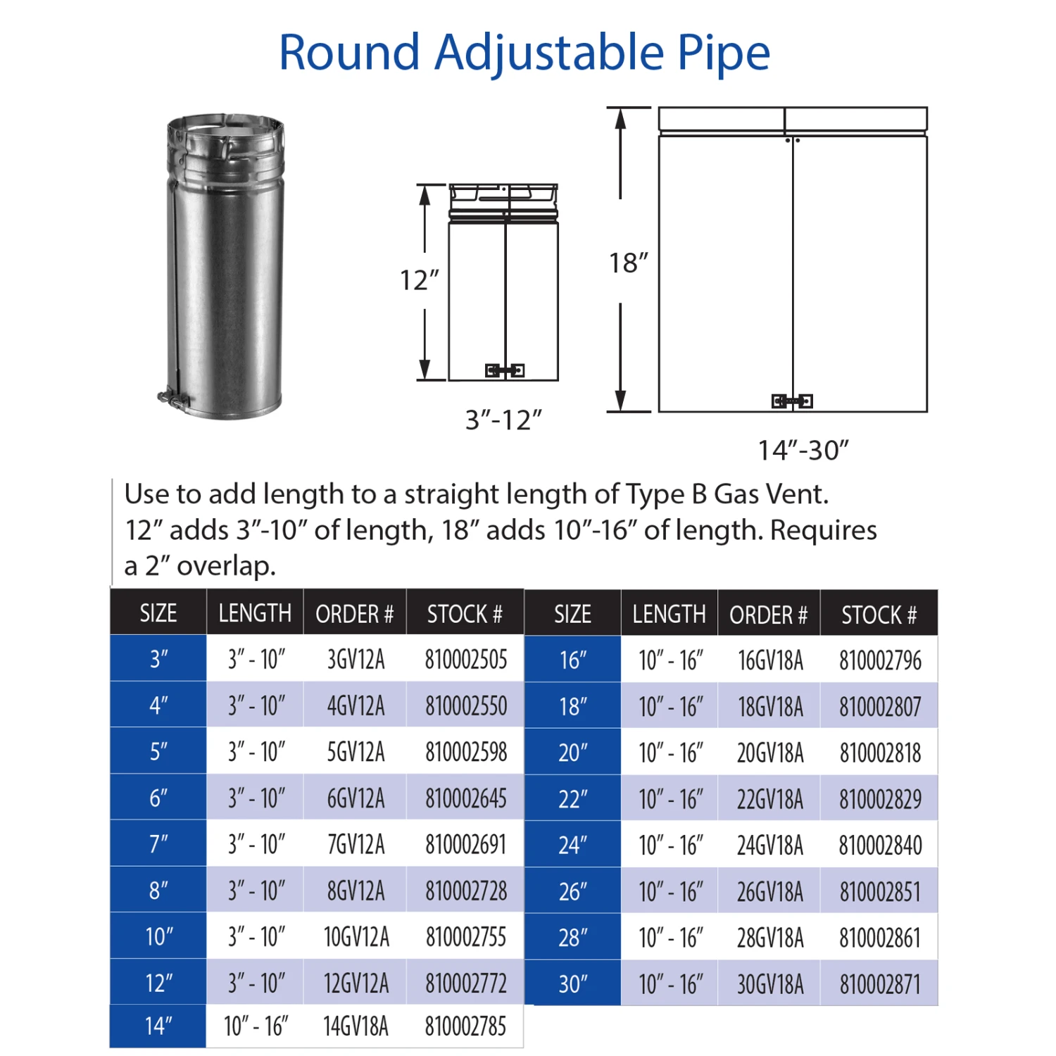 DuraVent Type B 12″ Length Round Adjustable Pipe | 7BV12A |