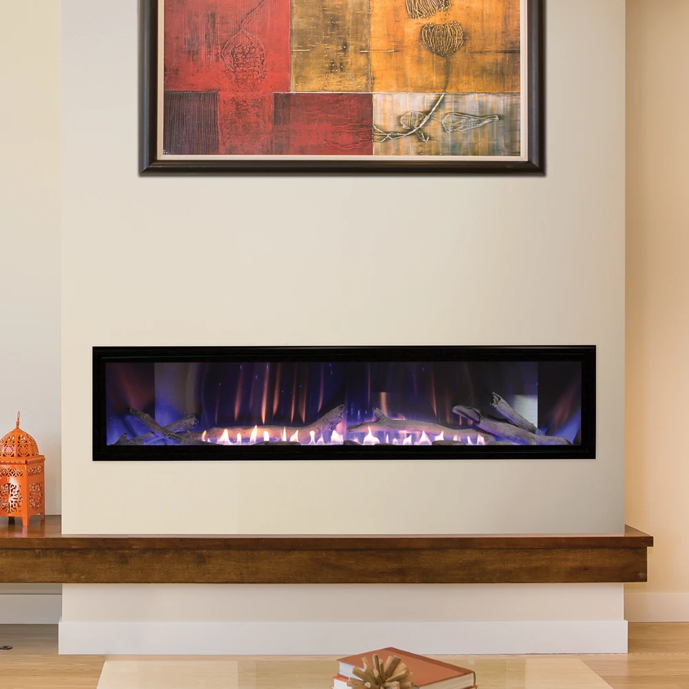 With its outsize proportions, its contemporary burner and its programmable multi-color LED lighting system concealed beneath an ocean of crushed glass, a Boulevard 60″ Linear Vent-Free Fireplace makes a bold statement that’s sure to turn heads in any setting. Easy installation with no venting needed.