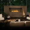 Empire’s Outdoor Linear Fireplace will light up your patio party for any occasion. This model conceals a gas burner beneath a large bed of clear-frost crushed glass. While the flames dance atop the bed of glass, the lighting system illuminates the glass from beneath.
