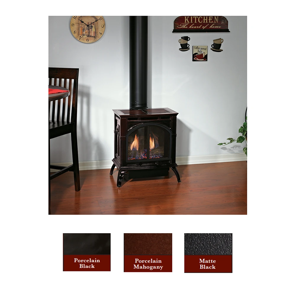 Direct-Vent Empire Cast Iron Stove Compact includes Empire’s Slope Glaze Burner system with expanded ember bed for extra glow. Ceramic beads within the burner swirl and tumble the gas to create naturally swirling flames that are indistinguishable from a wood fire. Topped off with the hand-painted ceramic fiber log set and glowing embers, the effect is stunningly realistic and guaranteed to keep you and your guests mesmerized for hours.