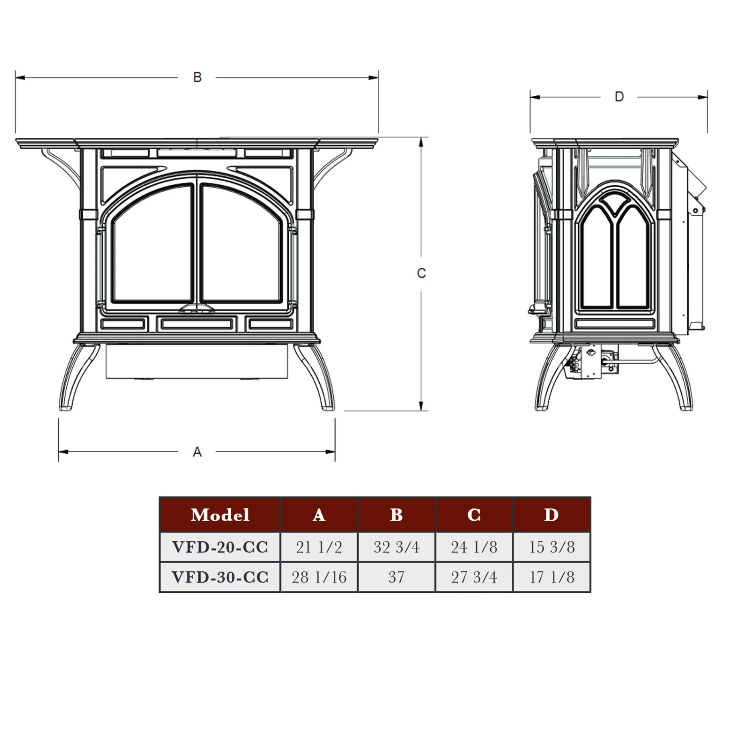 - Decorative cast iron doors (non-operable)