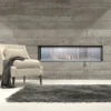 - Features a contemporary linear burner in a sleek, black firebox that reflects the flames to create depth and visual interest
