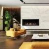 The 40-inch Rushmore Direct-Vent See-Through features a triple burner that creates a tall lively fire, accented with the Traditional Charred Logs and large glowing ember beds. This unit can be enjoyed in two rooms of any home. By adding the stainless steel outdoor kit, the unit can be installed on an exterior wall.