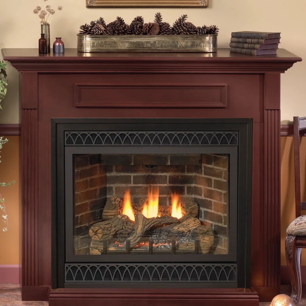 Tahoe Deluxe 32 is a direct-vent gas fireplace that is sure to add warmth and ambiance to your home. With its Contour tube-style burner, designed to complement the hand-painted ceramic fiber log set, and produce a natural dancing flame, this fireplace is a great choice for those who want a traditional and stylish way to heat their homes.