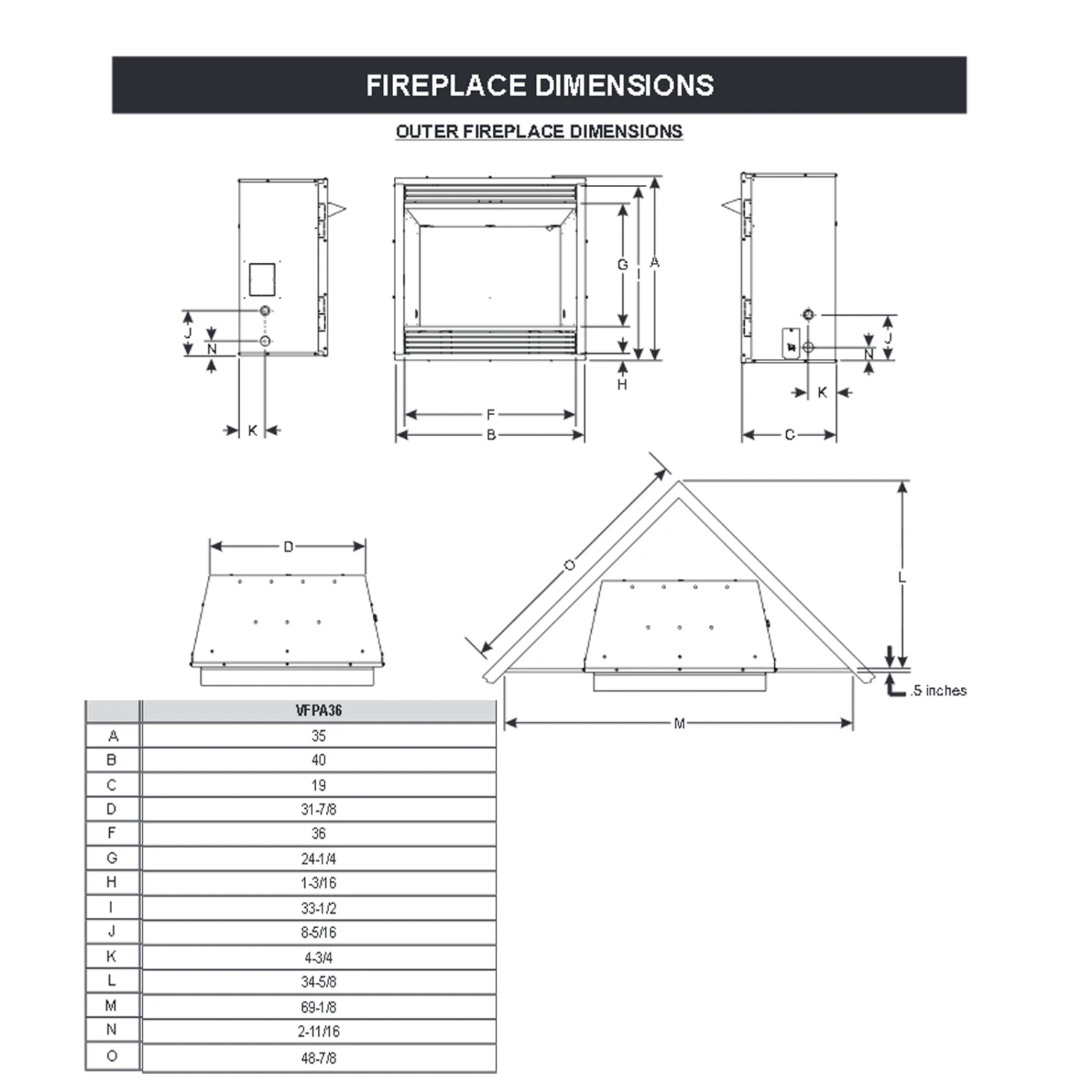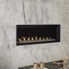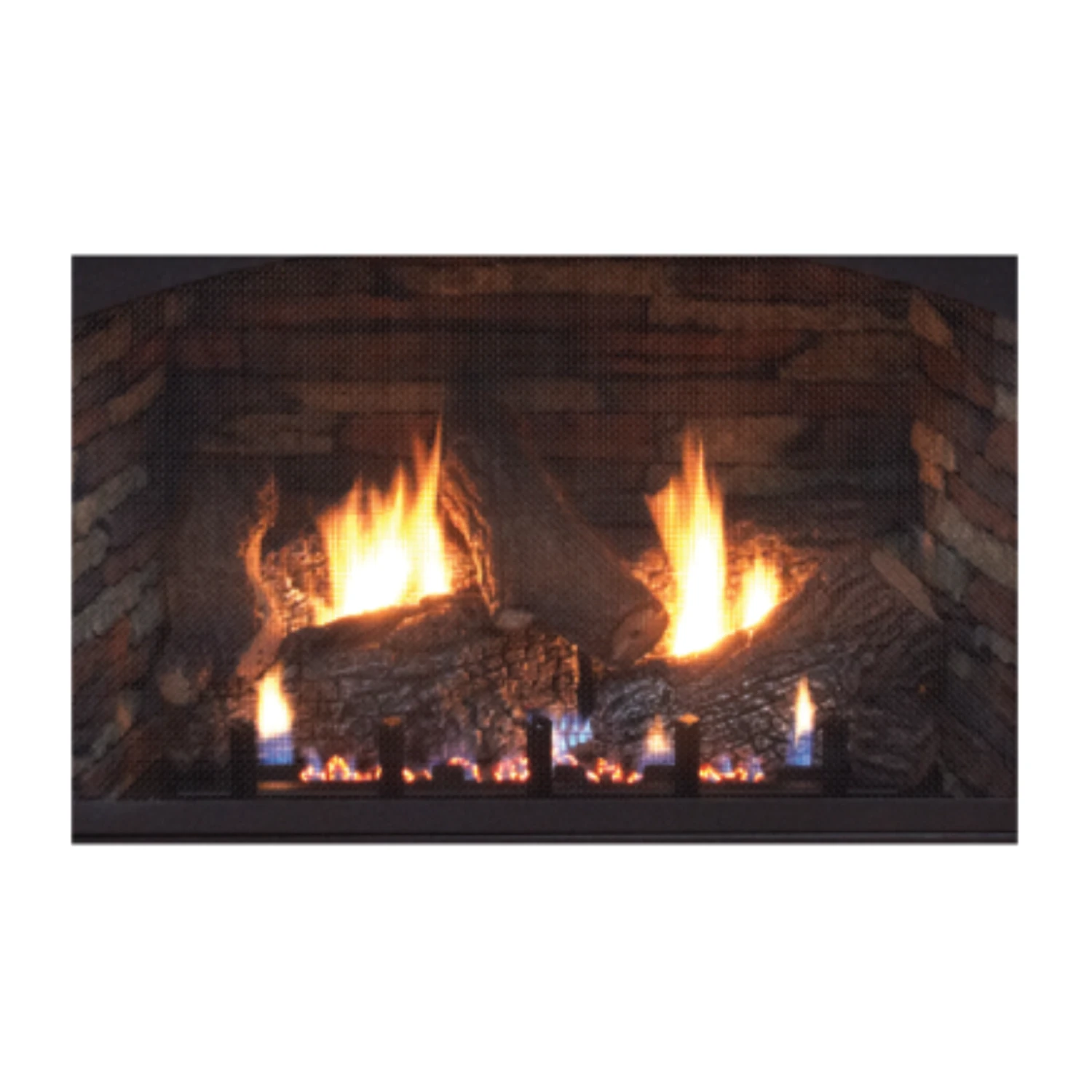 Vail Premium 36 Fireplace delivers more heat for your energy dollars – 36,000 Btu. Ceramic glazed pellets in the burner tumble and swirl the gas to produce a natural flickering flame. The matte black arched screen front perfectly frames the logs and optional brick liner to create an exceptionally beautiful fireplace.