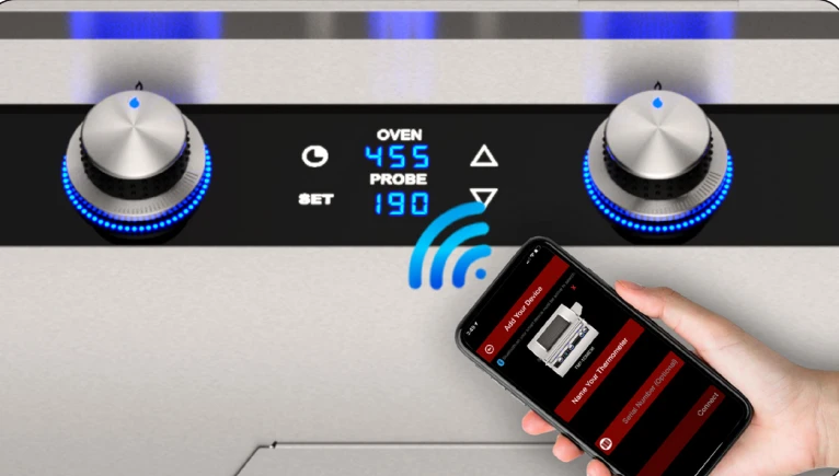 - Digital chrome meat and grill thermometer in control panel measuring up to 1000º F