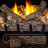 Upgrade your home heating system with Hargrove’s Weathered Oak set, featuring a large front split log and multiple flame heights between many top twigs.
