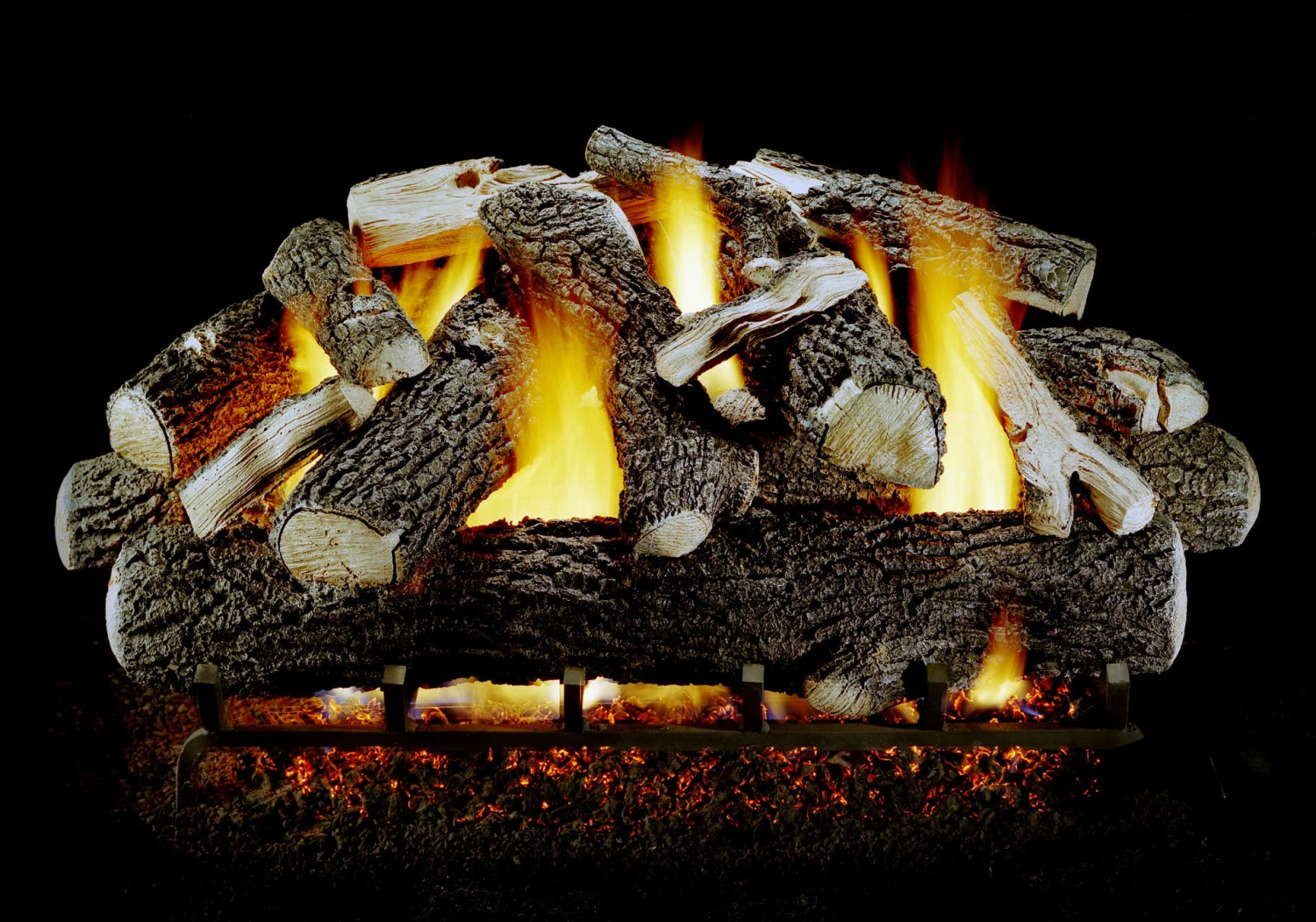 This log set utilizes the Summit Oak burner which uses a combination of a large ember bed burner and elevated tube-style main burner for the ultimate depth and height in larger fireplaces.