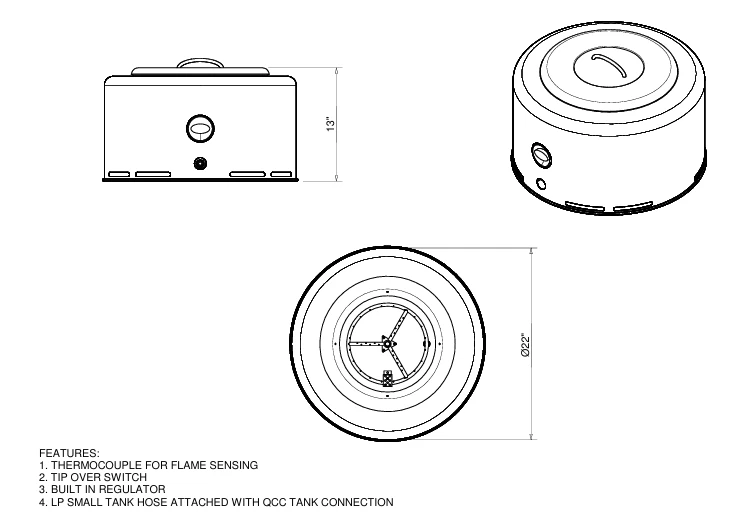 The Sport Pit is the ideal fire pit for tailgaters and campers. Lightweight, portable, and visually appealing, it offers a robust flame, making it a great gift. Customize it with stickers from your favorite athletic teams or outdoor brands and store it easily in your camper. The Sport Pit includes a lid with a handle, fire glass, and a hose for gas connection, burning for 13 hours on a 20lb liquid propane tank. Perfect for anyone seeking convenience and style on their adventures.