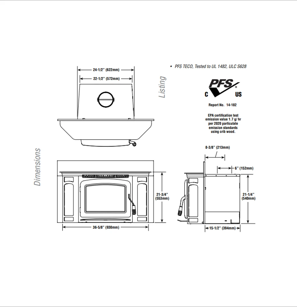 The Montlake 230 wood burning insert exemplifies elegance and efficiency in home heating. This series has set a new standard with its advanced Thermal Fin Technology, a cast-iron heat exchanger delivering the ideal amount of heat efficiently. The Montlake 230 includes durable ceramic glass that offers unobstructed views of the fire while facilitating optimal heat transfer. With a wide range of high-quality, versatile styling options, this insert seamlessly integrates into any home decor.