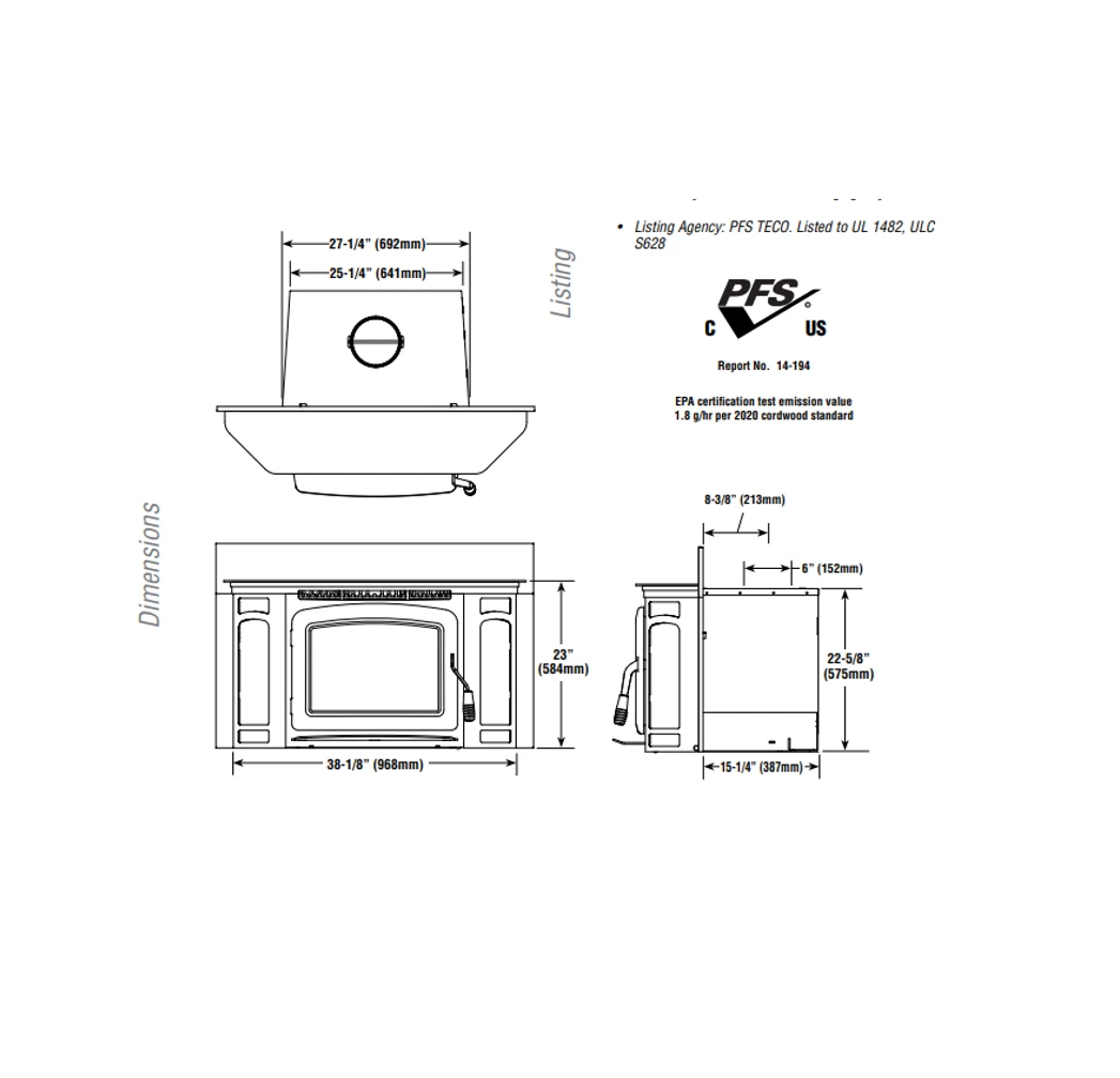 - Thermal Fin heat exchanger creates 32% more surface area than a standard insert design, resulting in more heat entering the room.