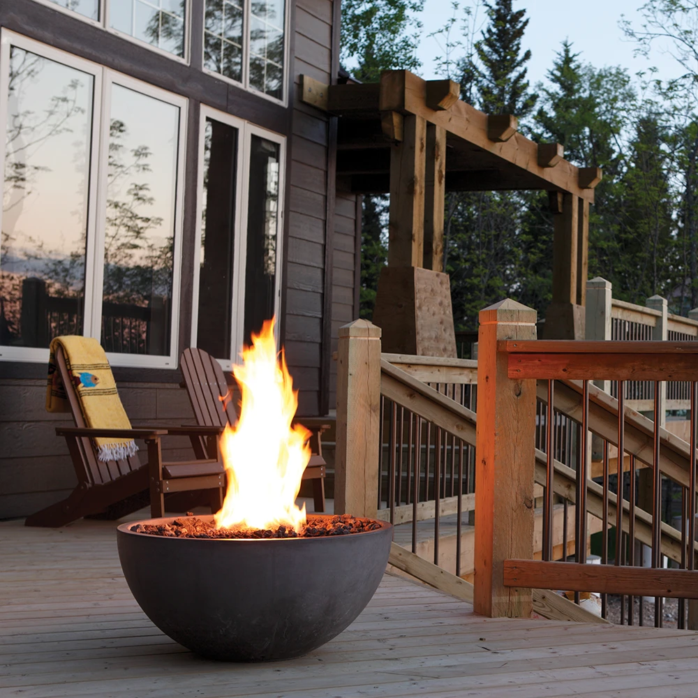 The Kingsman FP 20 Round Outdoor Gas Firepit is the perfect way to enhance any outdoor space. Create an area where you and your guests can have hours of comfort and enjoyment, as the Kingsman FP2085 lights up the night with its realistic flames. Powerful enough to chase away the cold, the Kingsman FP 20 emits up to 64,000 BTUs. Feel secure in your installation options and safely install your gas fire pit on top of a wood deck or patio. As long as you have seven feet of clearance above the fire pit, you can even install the FP 20 Outdoor Gas Firepit in a covered outdoor area. Take control of your outdoor space, and choose the Kingsman FP2085.