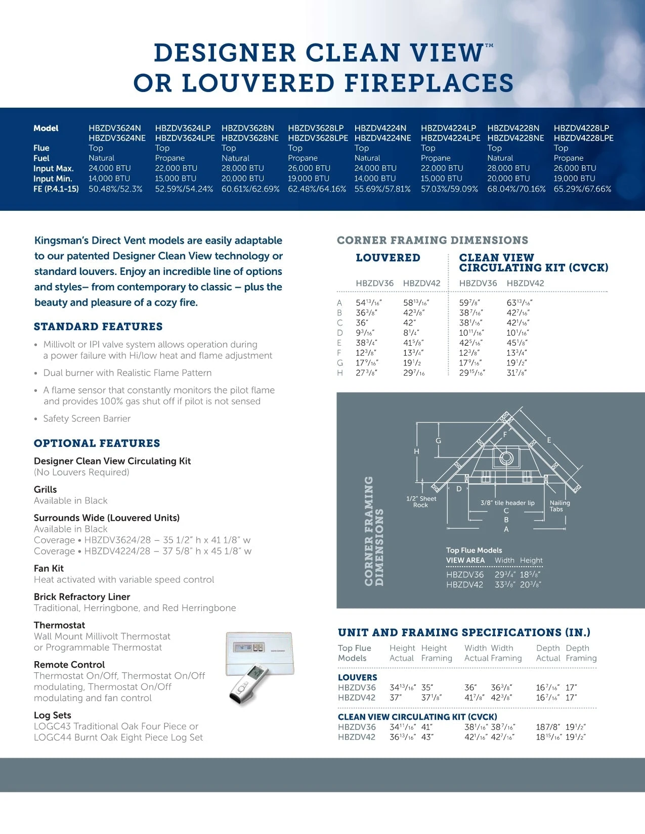 The Kingsman HB 3628 Direct-Vent Gas Fireplace is as functional as it is stunning. Add to the natural beauty of your home and customize the Kingsman HB3628 to match your decor. Nearly any room can be improved with the Kingsman HB 3628, as its zero-clearance design makes installation a breeze. Within this gas fireplace is a dual burner that produces stunningly realistic flame patterns. As well as bringing classic charm, the HB 3628 emits up to 28,000 BTUs. Ensure that you and your family stay nice and warm, as well as entertained, with this unit. There is no denying that the Kingsman HB3628 is a unit that provides you with all you need.