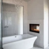 Introducing Majestic’s efficient and convenient direct vent gas fireplace with a standard brick interior and a blower for optimal heat circulation. The adjustable flame height allows you to control the heat output, while the 16-1/4″ deep profile makes it perfect for smaller spaces. It comes with a standard full firescreen front for protection and eliminates glass glare. Even during power outages, the IntelliFire Ignition System ensures continuous operation. With a flex line and gas shut off for easy plumbing rough-in, this fireplace combines functionality with style, creating a cozy and inviting atmosphere in any home.
