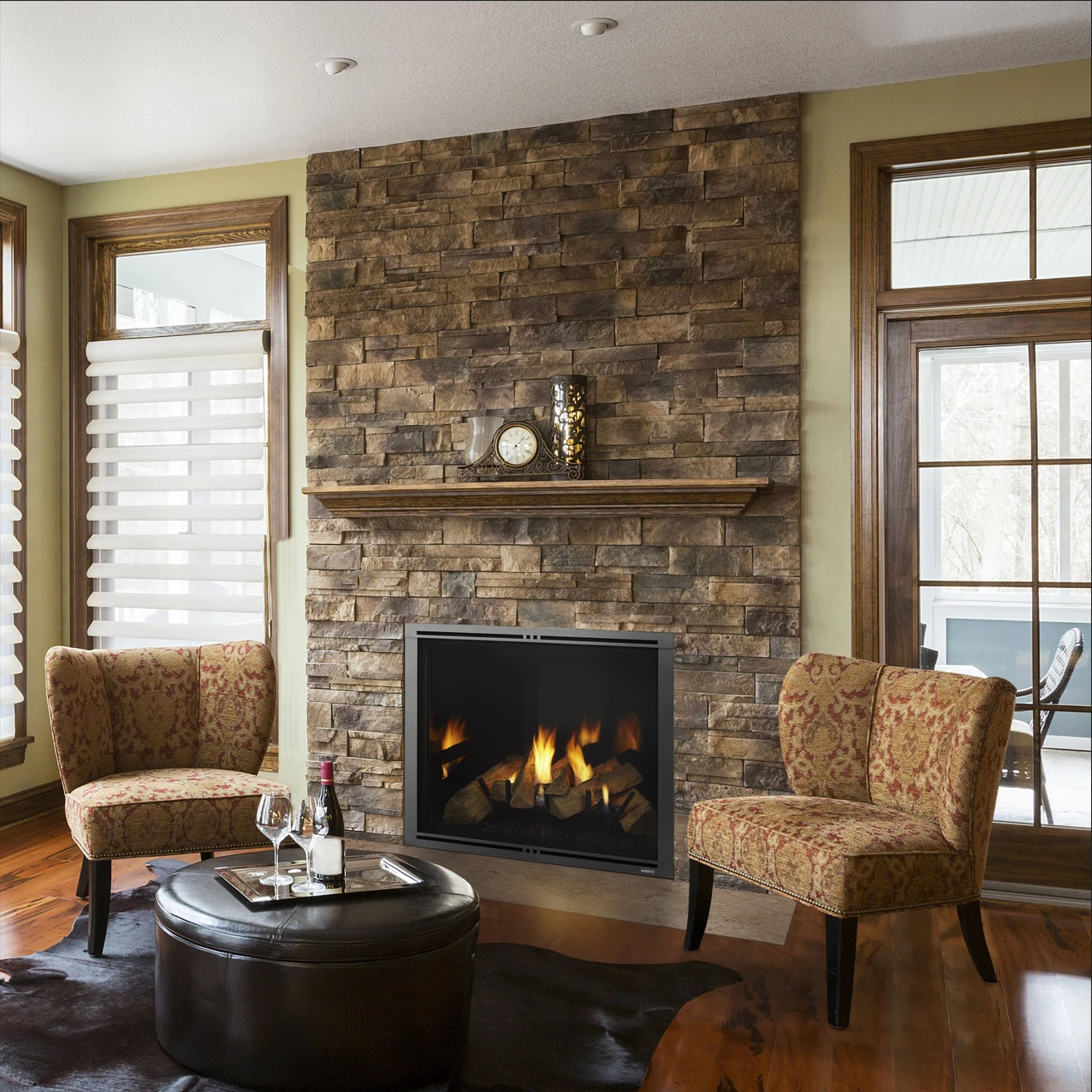 The Marquis II series gas fireplace fills your home with comfort. Watch the scene unfold with an expansive view of the flames as they wrap around split logs. The authentic masonry appearance and accent lighting enhance the beautiful fire. Come home to the Marquis II series gas fireplace, and enjoy the entertainment and romance you deserve.