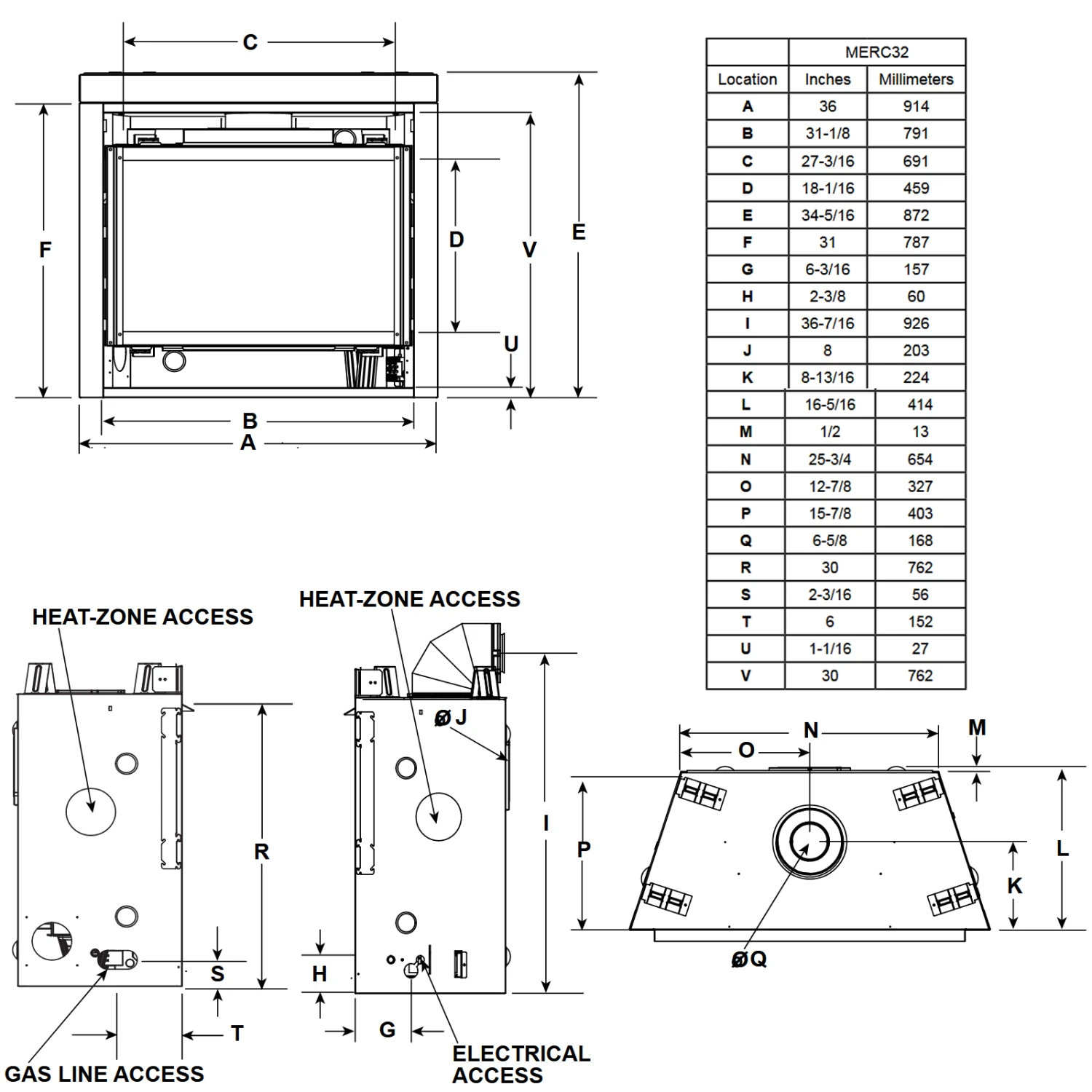 The Mercury 32 gas fireplace adds comforting warmth, ambiance and convenience to your space. A simple and easy hearth experience. The fireplace features a realistic flame effect and has a BTU output of 19,100 and can be used with natural gas.