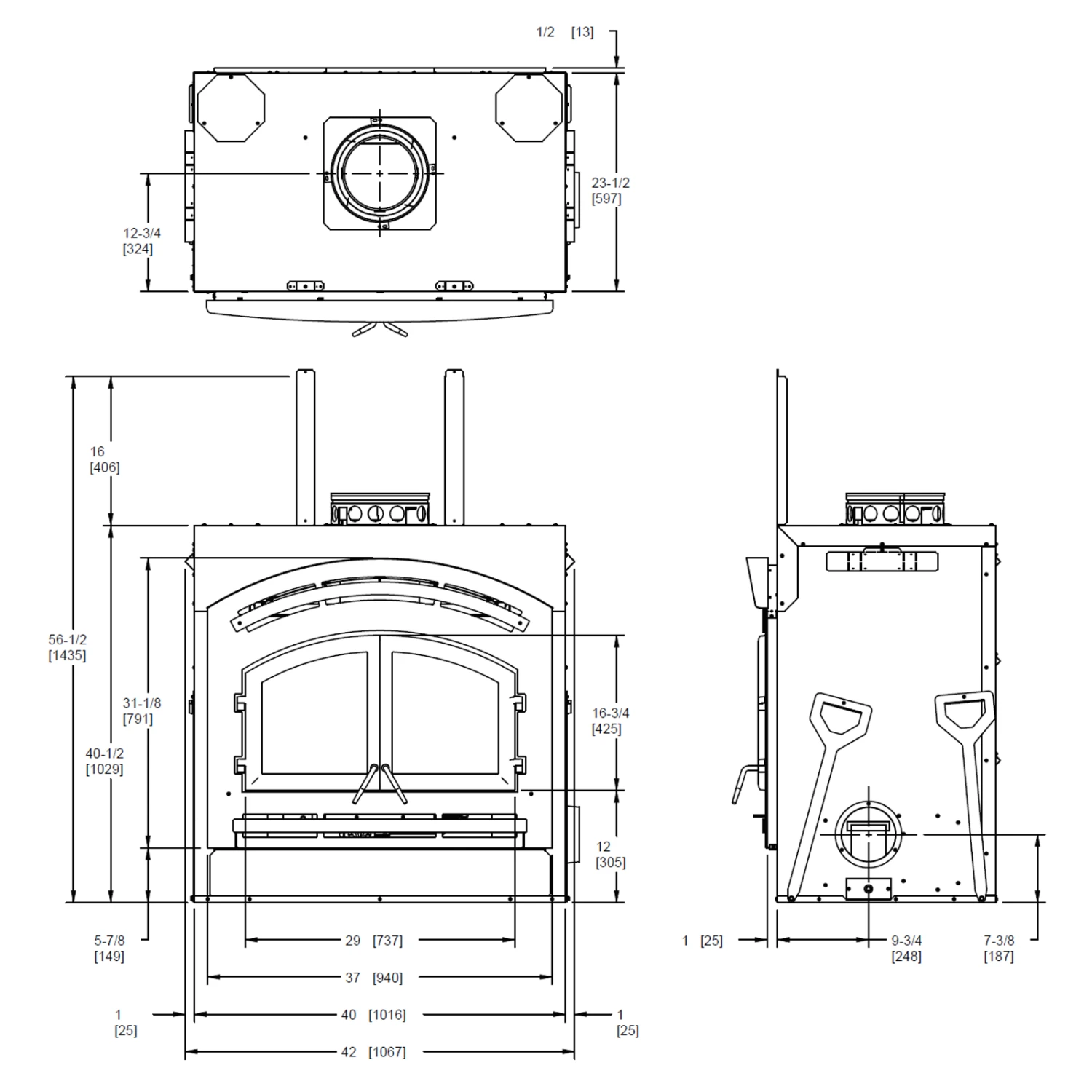 - 22″ recommended log length