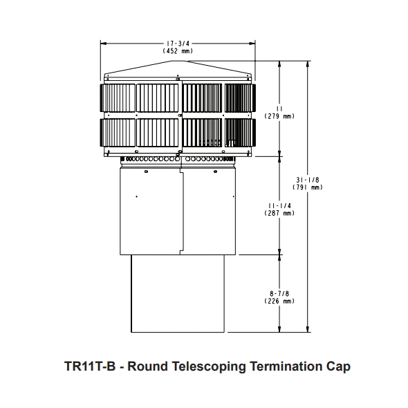 Majestic Wood Burning SL1100 Round Telescoping Termination Cap | TR11T-B |