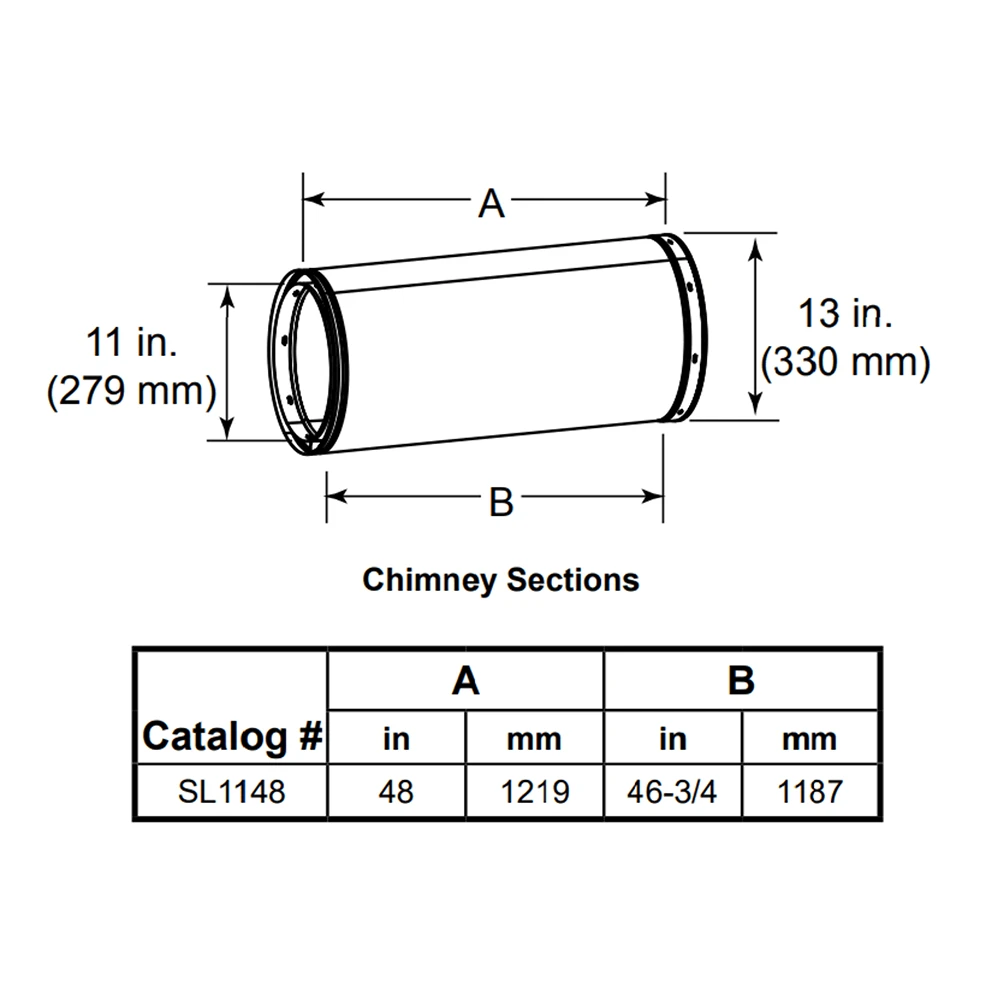 Majestic SL1100 series wood burning vent pipe, 11″ inner, 13″ outer | SL1148 |