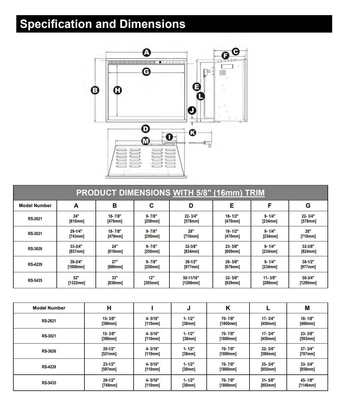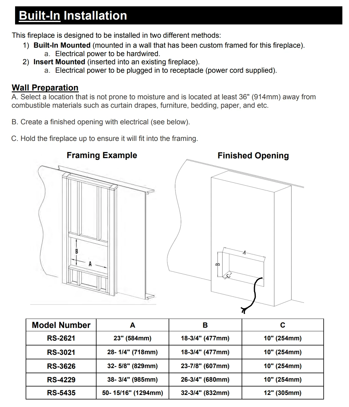 - Premium glowing log set and finish trim kit included