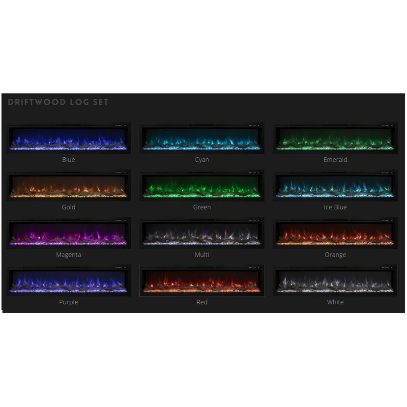 Modern Flames Spectrum 74 Built-In Flush Mount Electric Fireplace brings the flame versatility to the conventional electric fireplace. Modern Flames award winning flame appearance gets a tune up with 12 different flame color combinations to choose from. Projecting onto our gray back screen, the colors shimmer through the ember bed and create crisp clean flames through the whole color spectrum. Multicolor glacier crystal glass finishes off this contemporary ember bed. Finally, a thermostat, touch control and remote round out the operations of this fireplace.